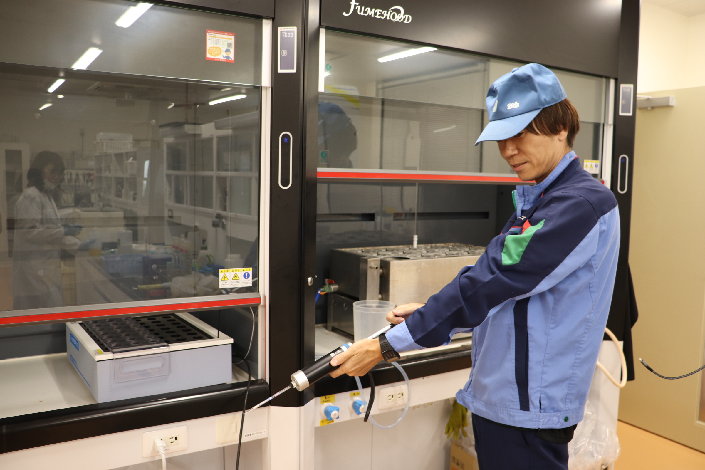 事業所から発生する特定悪臭物質(アンモニアやメチルメルカプタン、硫化水素など計22項目)の調査を行っています。